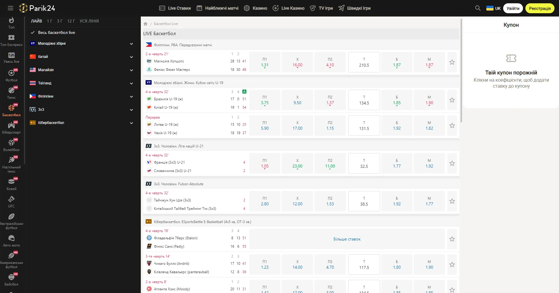 Раздел LIVE — один из самых динамичных и востребованных на Parik24. Он позволяет делать прогнозы прямо во время матча, реагируя на изменения хода игры в реальном времени. Благодаря мгновенной обработке купонов и быстрой корректировке коэффициентов игроки могут использовать десятки вариантов для прибыльной стратегии.